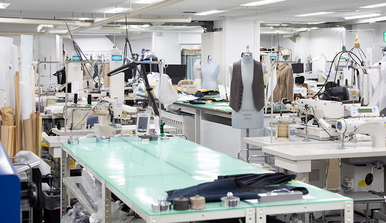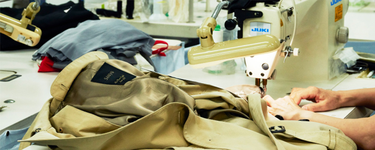 1969年の創業以来、当社のコートの生産拠点となってきたコート専業の自社工場「サンヨーソーイング 青森ファクトリー」。手仕事を施す伝統の職人技術を受け継ぐ一方、ものづくりの可能性を拡げるために新しい挑戦も続けています。