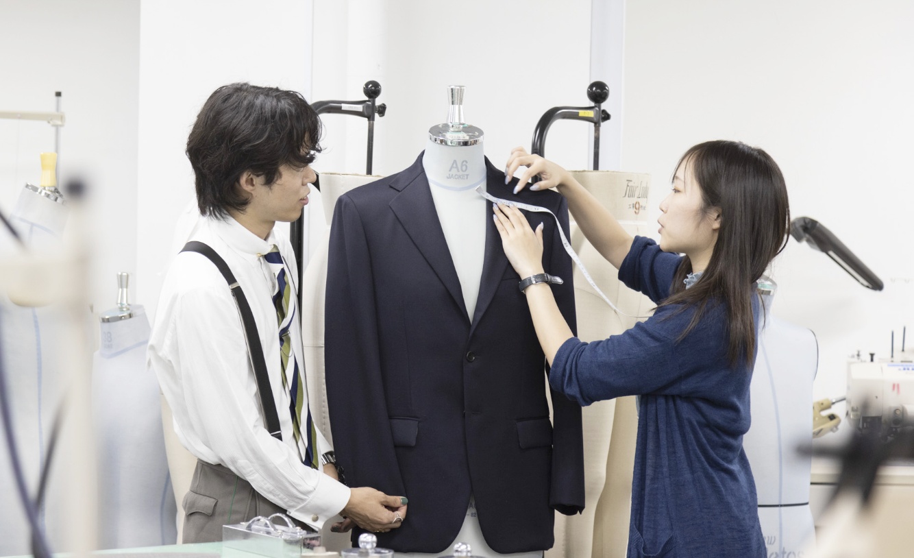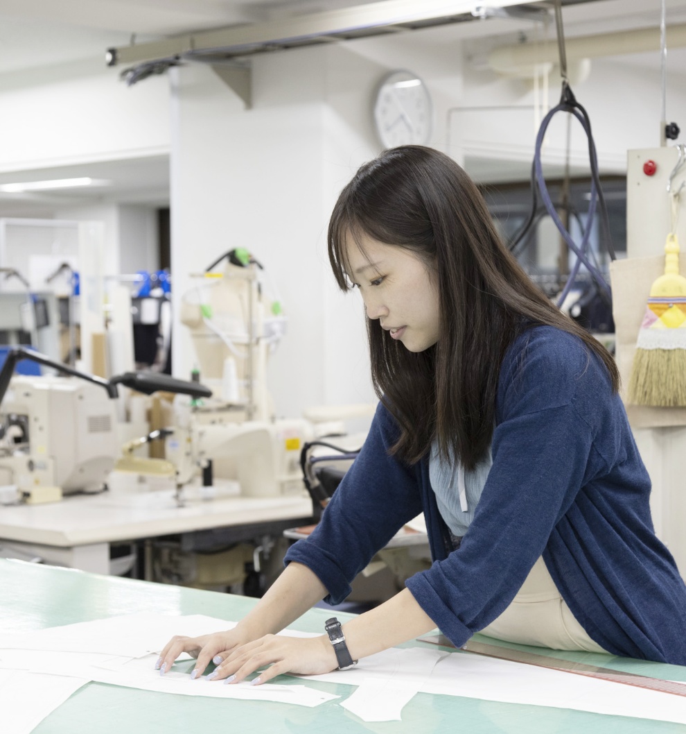 吉沢江口さんは子どもの頃から服づくりに興味があったんですね。私の場合は、大学2年生の頃に服づくりを仕事にしたいと考えるようになりました。もともとものづくりが好きだったのですが、大学生になってファッションに目覚めたことでその道を追求したいと考えたのです。そこで、ダブルスクールという形で大学に通いながら、服づくりの専門学校に入学。業界随一の高い技術力と、高い品質基準から生まれるハイクオリティな商品に魅力を感じました。