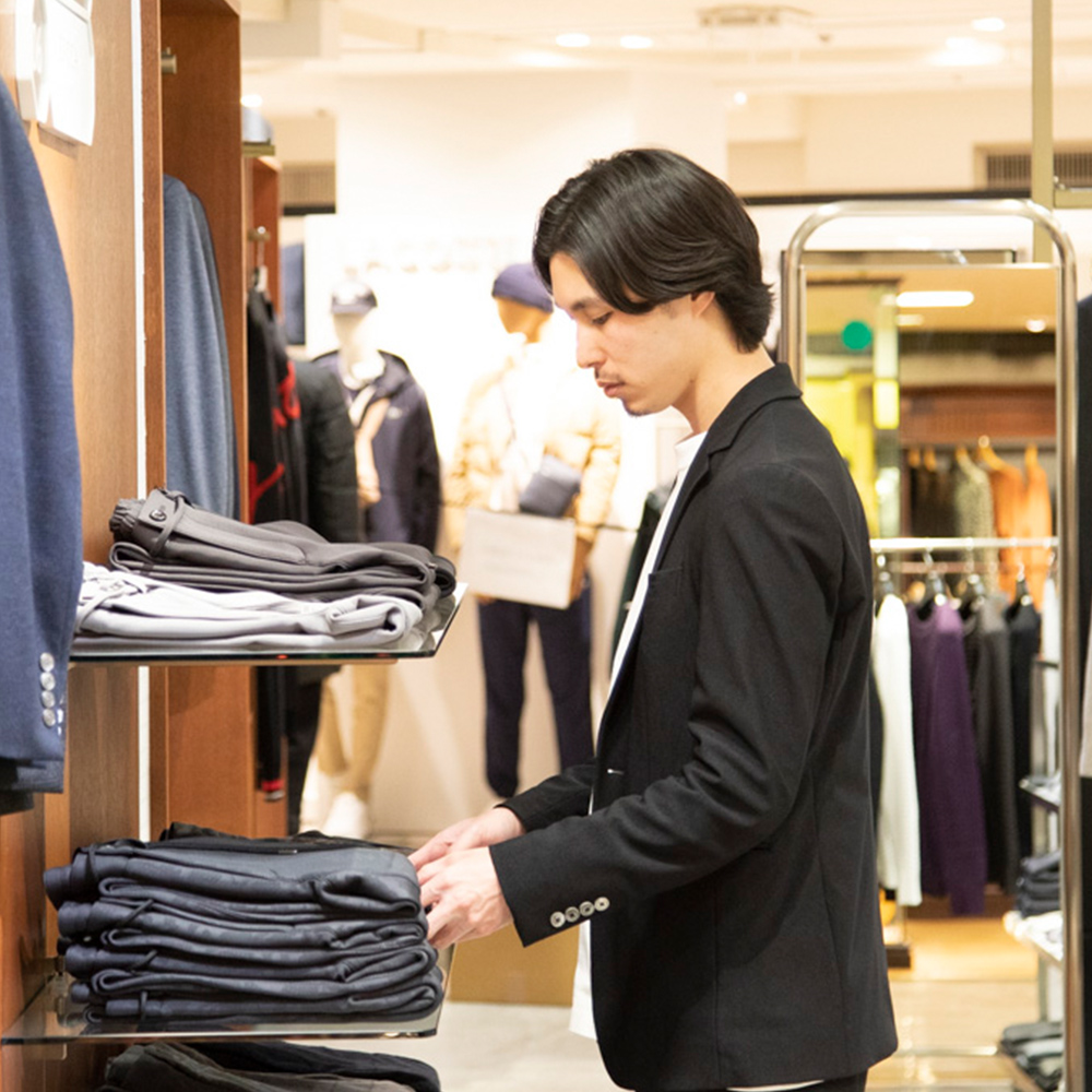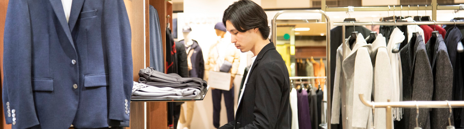 当社のブランドを展開している百貨店やファッションビル、直営店などの勤務先で接客・販売業務に携わっていただきます。「あなたがいるからこのショップに来ました」とお客様からの支持を得られるようなショップ運営を心がけ、成長とともにサブチーフ、チーフへとキャリアを積んでいただきます。販売の経験を活かし、将来的にMDやEC運営など社内業務に携わるチャンスもある職種です。